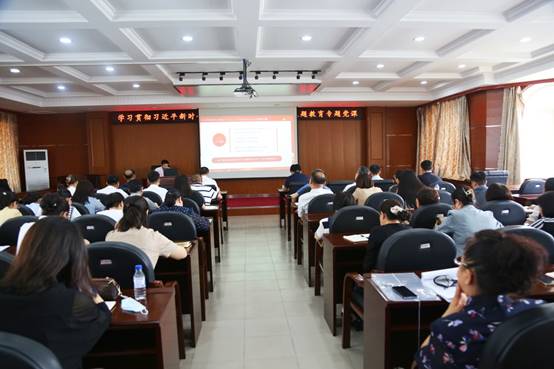 按照学院学习贯彻习近平新时代中国特色社会主义思想主题教育总体部署安排,6月30日,党委副书记、院长谢景武在六楼会议室为学院正处级领导干部、各党支部书记、高教科研发展规划处党支部及会计学院第二党支部全体党员、学生代表讲授专题党课。学院领导班子成员出席并参加专题党课。