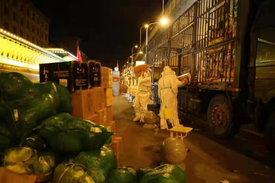 此时此刻,他们完全忘记了辛苦与汗水,不计个人得失,一心只为校园,只为让学生可以准时吃上安全新鲜的蔬菜,只为让学校的物资保障充足……这一夜学校灯火通明,辛苦搬运蔬菜物资的同志们也是彻夜未眠!