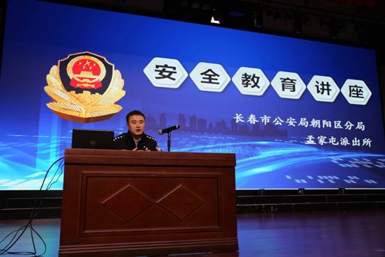 在安全教育讲座中,长春市公安局朝阳区分局孟家屯派出所副所长雷晓霖以通俗易懂,简单实用的法律知识,普及了大家的安全常识,解读了很多生动鲜活、触目惊心的大学生犯罪案例,联系实际,以案释法,以法论事,大量的现实违法犯罪案例及常见的诈骗方式进行了详细讲解,向大家传授了如何防范的方法。提高抵制电信诈骗侵害能力及自我防范意识,同时也希望在校的同学们要认真思考,做好自己的人生规划,努力规范自己的行为,积极学法、守法、用法、护法,使这次报告会得到实效。