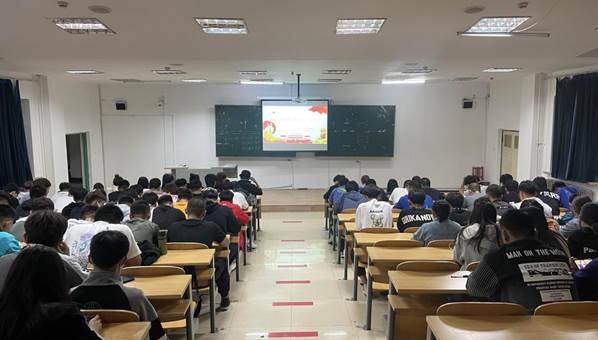 在各教学分院团总支和辅导员的积极配合下,辅导员和全体新生在教学楼通过“人民网+客户端”、“咪咕视频”等方式集中统一收看,其他各年级学生和教师通过手机、电脑在线自行收看学习。