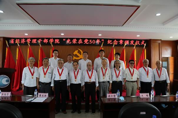 6月16日,学院举行“光荣在党50年”纪念章颁发仪式,为学院党龄达到50年的优秀党员颁发“光荣在党50年”纪念章。学院纪念章获得者、院领导、副处级以上党员领导干部、各党支部书记、离退休办党支部全体人员参加了仪式。颁发仪式由学院副院长杨茂臻主持。