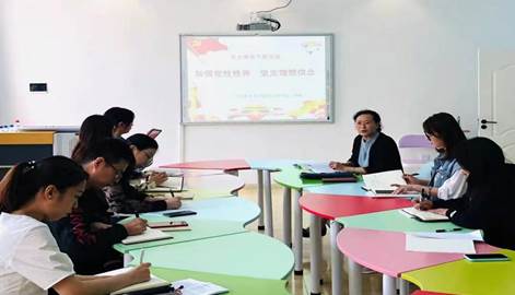 第四项,学党史、讲党课。马克思主义学院党支部书记、院长刘颖结合思政课教学,讲授《加强党性修养 坚定理性信念》专题党课。通过党课学习,大家进一步认识到,作为党员,尤其是思想政治理论课教师党员,要承担好“党员”和“教师”的双重角色,将事业和职业有机结合起来,做学生在政治上、思想上和行动上的指导者和引路人。