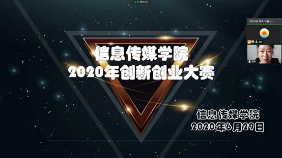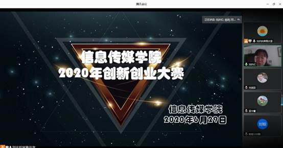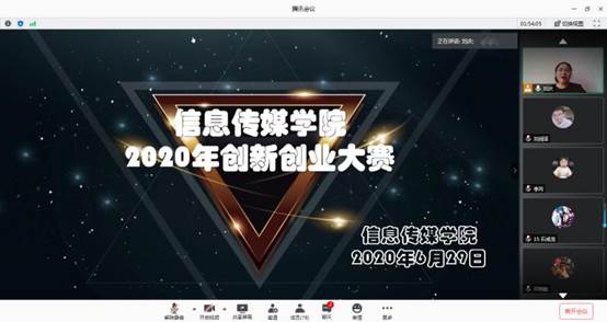 为进一步激发信息传媒学院大学生创新创业动力,全面提高分院大学生创新创业意识,营造浓厚的创新创业校园氛围,提升分院大学生创新创业能力,输送优秀创业团队参加学院创新创业大赛,6月29日,信息传媒学院通过腾讯会议在线平台举办2020年度大学生创新创业大赛分院赛。学院党总支书记周雪娟、院长刘庆红、副院长邓又明、教育信息化中心主任张红岩、学院创新创业教研室主任刘春博及全体指导教师参加本次大赛并担任评委,活动参赛选手达百余人。大赛由团总支书记刘庆主持。