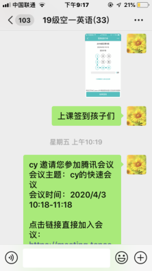 2)Wechat Group 发布腾讯会议号,邀请学生;