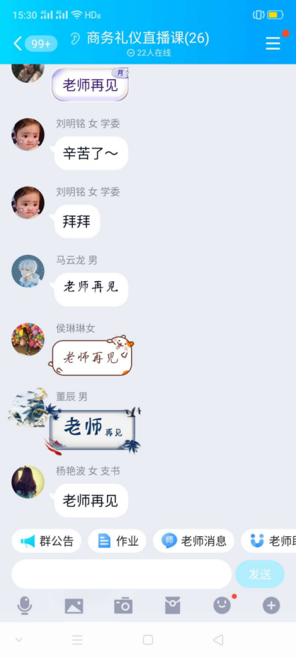 结合《商务礼仪》课程的特点和培养目标要求,采用在线直播教学方式,在授课时要求学生轮换打开摄像头,进行考勤和观察学生的学习状态,从礼仪的角度要求学生端坐上课,对学生的服装也提出了要求,穿着不能随便;对学习环境也提出意见建议。将思政教育通过礼仪教育的模式表达出来,将课程培养目标潜移默化体现在学生学习的全过程中。