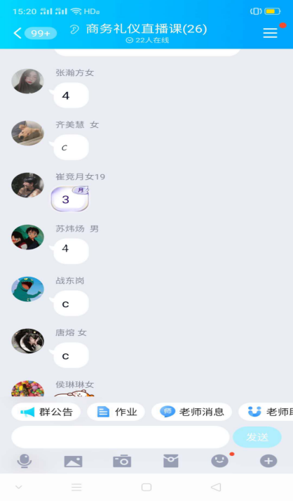 由于网络教学有一定的局限性,教师不能实时监测到每个学生的听课状态和效果。为了提高学生上课时的注意力和课堂的参与热情,我会在讲课过程中,随时向学生提问,学生随时抢答,亦或随机点某个学生的名字,让他打开摄像头按纽,来回答问题,答对者记入一次平时成绩。这样不仅可以随时检测学生听课状态,防止溜号,也能增加和学生一对一的交流频率。真正地实现学生与教师的实时互动,也大大的提高了学生上课的关注度和积极性。
