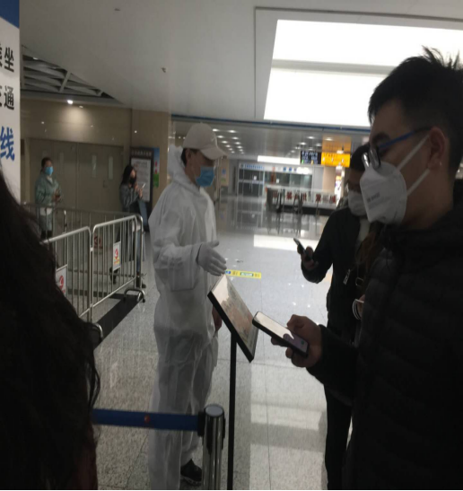 除此之外,他经常在服务区内帮助过往的乘客做力所能及之事。经常帮助年纪大的乘客拎、抬行李箱。在第一天的工作中,他遇到了两位年长老人,在售票区处四处张望,他赶紧赶过去询问,得知二老不会使用电子售票机时,他耐心的帮助老人购买车票。虽然这只是举手之劳,但在特殊的时期,他依然坚定的说:“能帮到就好。”当然,在工作期间,他也遇到了一些棘手的情况。有些旅客对于防疫工作的检查表现出反感,甚至有质疑和责问。其中有一个案例,一名男子在测体温时,怀疑体温测量的准确性,不配合测量,还说是走形式,面对这种状况,赵文亮以微笑面对,耐心的疏导旅客情绪,而这名乘客仍然不给予配合,甚至还责怪检测工作耽误了他的时间,此时,赵文亮依然坚守职业操守,晓之以理,动之以情,最终成功劝说旅客主动接受测温。