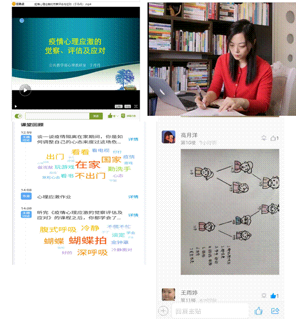 利用学院网络授课的途径,亲自向学生讲解《疫情心理应激的觉察、评估及应对》等课程,帮助学生及时觉知自身情绪状态,做好自身心态调整,掌握个体自助、求助、互助的心理调试方法。为了更好地做好学生的心理疏导,结合疫情开展心理教学,让学生绘制暖心的家谱图册,使学生深刻体会到非常时期要更加珍爱自己和家人在一起的时光,与家人一起共同战疫!