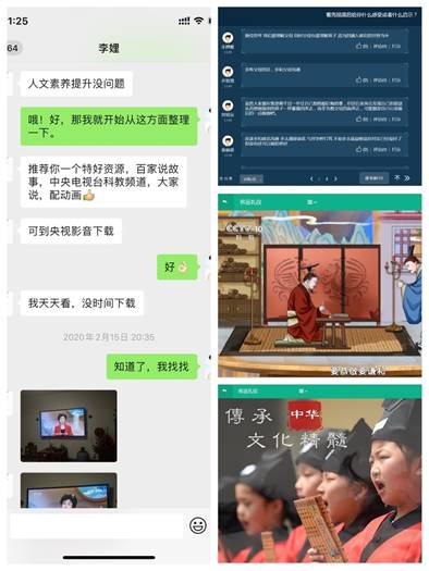 本学期刘影老师承担着中职“3+2”高速铁路客运乘务专业《社交礼仪》课程。针对中职学生的学情特点和听课习惯,她将“树立中职生正确的人生方向,做一名饮水思源的中国人”为授课目标,挖掘在课程中的思政元素。为了能使课程更有特点,她主动向同行老师们请教,李娌副院长建议她:对中职的学生教育要从人文素养提升切入,推荐“百家说故事”视频内容在课堂教学中。”交流后,她重新编写了《社交礼仪》课程的教学大纲,整理大量传统文化教育网课资料,又在课程里加入《百家说故事》视频 ,用每一个经典人文教育小故事给学生以启迪,传递和传承中国人诚信、善良、自强、进取的人文精神与价值理念。多种形式的课堂教学呈现,让处于学业过渡期的中职学生热爱祖国传统文化,做一名有道德、讲礼仪、知荣辱的“准大学生”。3周课程下来后,同学们出勤率很高,课堂十分活跃,参与度也高,家长们有时也和同学们一同听课,积极支持学生上网课。