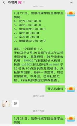 作为一名辅导员,整理一条条学生健康信息的记录,发出一条条具有温度的信息,拨出一通通饱含关心的电话,组织一次次充满爱的防疫宣传活动,就是最好的抗疫。