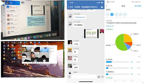 如果说新冠肺炎疫情给教育领域带来哪些积极影响,那一定是推动了中国在线教育的推广。上到五十几岁的老教师,下到刚入职的新教师,都纷纷行动起来,有利用学院提供的超星学习通平台的,也有利用智慧树平台,有利用优质课程资源的、也有自己录制视频的,有利用腾讯会议、腾讯课堂、企业微信直播的,也有利用QQ群直播的。老师在各种平台切换使用,保证“空中课堂”不断线。学习通教学平台高峰时期卡顿现象严重,老师们将签到环节转到QQ群打卡或接龙,课堂讨论环节转到微信群或QQ群讨论,待平台运行稳定后,再将环节拉回到平台,保证后期数据的统计。课堂上,电脑、手机齐上阵,有采用“屏幕分享式边讲边练”直播教学模式的、也有采用“录播+任务引领”混合教学模式的,有采用“PPT+语音”混合教学模式的、也有采用“在线课程资源+个性化辅导”混合教学模式的,各位教师积极开发多元的教学方式,创新课堂授课模式,通过屏幕分享、实时投屏、课堂测验、调查问卷、选人、布置课堂任务、讨论等形式频繁与学生互动,学生在线抢答,弹幕不断,课堂教学井然有序又不乏趣味性,保证了教学标准不降,教学内容不减,教学效果不变,创造性地顺利完成了教与学的任务。