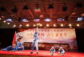 活动在由院大学生艺术团表演的歌伴舞《保卫黄河》的激昂旋律中拉开了帷幕。在第一篇章“忆初心来路”中,各分院分别以诵读、话剧、歌曲相结合的形式演绎了《松花江上抗联英雄》《复兴中华》《永远的一二·九》《蓦然回首 不忘初心》《传播火种》《金色鱼钩》《不忘初心 坚守本心》《绣红旗》《血沃中华》等经典红色故事。学生们表情刚毅,目光坚定,声音浑厚有力,场面气氛热烈。一个个激荡人心的红色故事,把全场观众的思绪带到那个战火纷飞的年代,在重温难忘岁月之余,更激励青年学子铭记历史、坚定信仰。