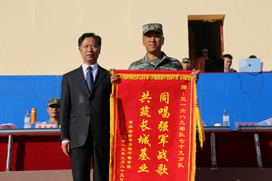 学院党委书记苏显学为承训部队颁发锦旗