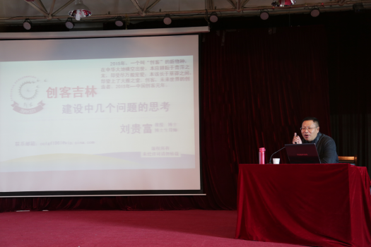刘贵富教授是学院此次申报吉林省创客领域研究基地的负责人。他首先介绍了创客吉林的内涵、创客运动的发展轨迹,并从多重视角分析了“创客吉林”与学院教学、科研、教师的关系,指出学院的教职员工都应是创客基地的参与者、受益者。刘贵富教授的讲座,使广大教职工对“创客吉林”与创客领域研究基地的总体规划有了清晰的认知。