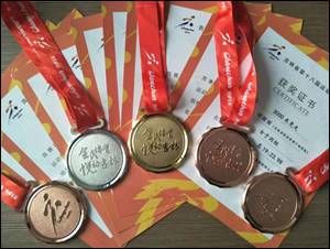 在足球比赛中,我院组建了第一支女子足球队,经过一个月的集训,获得了团体第三名的成绩,斩获铜牌16枚。
