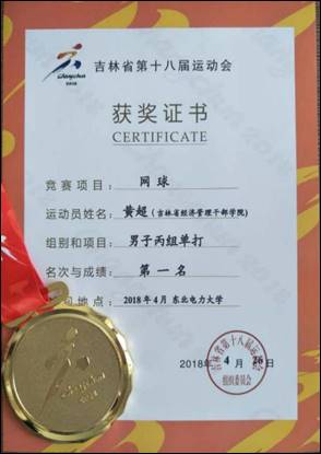 网球比赛,来自经济管理学院的黄超获得了男子丙组单打第一名的成绩,获得金牌1枚;来自机电工程学院的张言获得了男子丙组单打第三名的成绩,获得铜牌1枚;来自经济管理学院的胡嘉葆获得了男子丙组单打第四名的成绩。