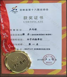 吉林省第十八届运动会(高校组)暨吉林省第十一届大学生运动会昨天在吉林财经大学体育场落下帷幕。本次比赛由吉林省教育厅主办,分设多个比赛项目模块,赛程从2018年3月份持续到2018年6月份,我院参加了乒乓球、羽毛球、网球、排球、足球、田径六大项目的比赛。在教研室主任杜志锋的带领下,各位体育教师和学生共同努力、艰苦训练,克服了重重困难,经过激烈角逐,我院代表团共斩获金牌2枚、银牌1枚,铜牌17枚,开创了我院历届大运会最好的成绩,为学院争得了荣誉。