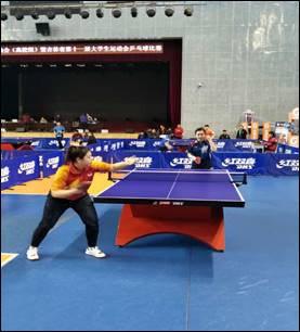 在乒乓球比赛中,来自文化旅游学院的薛丹同学,经过一路拼杀,在参赛的279名运动员中脱颖而出,斩获女子单打冠军,获得金牌1枚。