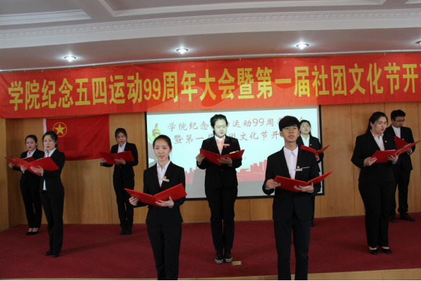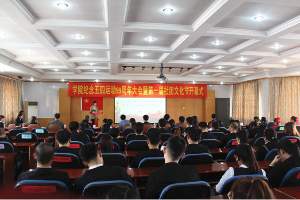 为深入学习贯彻落实党的十九大精神和习近平新时代中国特色社会主义思想,培养和弘扬社会主义核心价值观,繁荣校园文化,5月4日下午1点半,学院在办公楼六楼会议室举行纪念五四运动99周年暨第一届社团文化节开幕式。学院党委高度重视此次活动,党委书记苏显学、党委副书记魏岩出席大会。出席大会的还有各二级学院党总支书记、副书记、团总支书记以及获得表彰的学生代表。大会由学生工作部副部长张景成主持。