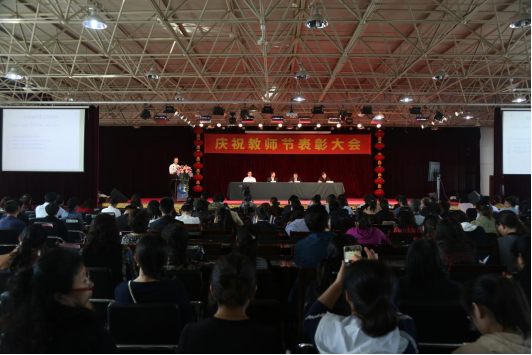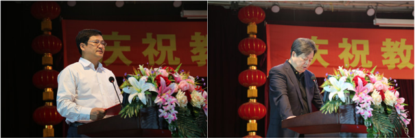 最后,党委书记苏显学代表学院向全体师生员工致以节日的问候,向受表彰的先进集体和个人表示热烈的祝贺。从“共享为师之荣耀、共担为师之责任、共显为师之成效”三个方面分享了作为人师的光荣与责任,充分肯定了全体教职工在过去的工作中为学院发展建设的辛勤付出,并从“要爱我们的学生,以立德树人为根本使命,善做学生健康成长的指导者和引路人;要爱我们的事业,以“四有”教师为价值追求,争做社会主义核心价值观的践行者和传播者;要爱我们的学院,以兴院荣院为责任担当,勇做学院事业发展改革的建设者”三个方面提出了殷切的期望。