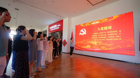 参观完毕,所有党员在王琦院长的带领下,面对庄严的党旗重温入党誓词,感悟初心使命。宣誓声铿锵有力,在馆内久久回荡,党员们用铮铮誓言表达出为党、为国家、为教育事业不懈奋斗的决心和意志。十二句话,句句千钧,值得我们用一生去实践、去坚守。