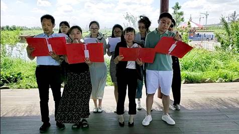 在吉林省天定山党史教育基地展览馆门前,所有党员们满怀激动之情齐声合唱“没有共产党就没有新中国”,那歌词朴实无华句句入心,那歌声催人奋进声声入耳,那旋律慷慨激昂久久难忘,促动着每个人的灵魂,眼前不禁浮现出战争时期苦难人民一张张渴望和平的脸庞、无数英雄先烈浴血奋战的悲惨画面,以及那艘开启了中华民族伟大复兴的红色小船。不禁让人感叹没有中国共产党的领导就没有新中国的诞生,就没有如今中华民族所取得的举世瞩目的成就。唱毕,所有党员们在“奋斗新征程、建功新时代”的决心中开启了党史参观学习。