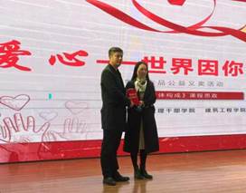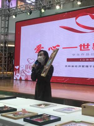 此次义卖活动在同学们的歌声中拉开了帷幕。盛立军作了热情洋溢的致辞,对为此次爱心捐助活动提供场地和设备的 “吉林省青年荟创业孵化基地有限公司、吉林省栖乐荟商业运营管理有限公司”表示诚挚的谢意!对参加此次爱心捐助活动的校企合作单位“长春城人之家装饰有限公司、长春波涛装饰工程设计有限公司”表示热烈欢迎!对为此次爱心捐助活动贡献作品的同学们表示敬意!然后苏团长上台跟大家介绍了长春市喜加爱关爱中心的基本情况,对大家的善举表示感谢,并为学院颁发了感谢状。