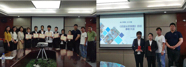 为企业认识实践优秀学生颁奖并合影