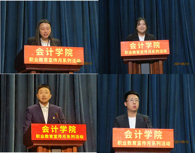 本次交流会的经验分享分为“升学、就业、创业”三个部分,来自会计学院2009级-2019级的八名优秀的应届、往届毕业生分别发表了精彩演说。升本考研代表2015级会计7班徐昊(吉林财经大学法律硕士)和专升本代表2018级会计3班王晓宇分享了他们升学之路的成功经验,明确目标、掌握方法、不断努力、拼尽全力。尤其是徐昊同学分享从不愿学习到顺利考取会计从业、证券从业、初级会计等资格证书,并顺利升本,并通过了英语四级、英语六级考试,今年又考上了吉林财经大学法律硕士。他在分享的过程中,台下数次响起雷鸣般的掌声,师生们都对台上这个温柔而坚韧的大男孩感到由衷的敬佩。通过校企合作企业就业的学生代表,2015级会计1班徐东升(吉林中圣达企业管理集团的项目经理) 2009级会计1班尹伟丽(东奥教育集团吉林省分公司高级财经辅导教师)、2014级财务管理郜艳秋(长春市乐为科技有限公司销售经理)、2019级会计6班周柏序(好利来宽城万达店出纳)分别讲述了他们在工作岗位的实践收获和从职场小白到职场老手过程中的心路历程,他们谈到要摆正就业态度,选择适合自己的岗位,踏实工作,吃苦耐劳,勤学多问,掌握职业技能和有效的工作方法。2015级会计电算化班孟国轩(吉林银行同志街分行客户经理)是通过招考入职的,他鼓励同学们多参与学校活动,找准自己未来发展定位,在好的工作机会来临时能够毫不犹豫地把握住。成功创业的学生代表,2011级会计4班肖祖兴(吉林翌兴企业管理服务有限公司执行董事兼总经理)表示感恩母校的培养和在校期间老师们的帮助,将“不忘初心,砥砺前行”,尽自己最大的努力为母校争光,为社会尽责。八位优秀毕业生的分享给大家带来了前所未有的动力,激励了学生,感动了全体师生。