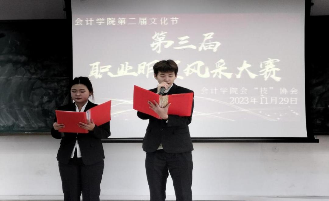 随着会计学院会计文化节活动开展的如火如荼,第三届职业明星风采大赛也如期举行。为塑造行业精英,树立起新一代会计人的文化价值观,提升学生的文化认同和文化归属感,会“技”协会创造了一个会计生彰显自身价值的平台,在专业和才艺等多项领域中展现会计人的新形象,会计学院会“技”协会于2023年11月29日中午12:30至14:30在A教205举行了第三届职业明星风采大赛的总决赛,本次大赛由会“技”协会总教练辛悦带领社委员成员全程跟进指导。大赛邀请了会计学院领导班子、各社团教练担任大赛评委,并特邀了吉林万通集团长春分公司综合办副主任肖荣静担任企业面试官,共同为参赛选手打分。本次比赛由会员绳雨涵、李禹佟主持。