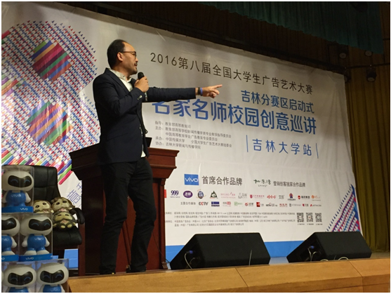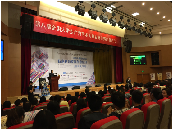 2016年4月21日下午,第八届全国大学生广告艺术大赛吉林分赛区启动式暨名家名师校园创意巡讲(吉林大学站)在吉林大学南校区经信教学楼报告厅举行。我校数字出版学院广告设计与制作专业的师生聆听了名家名师们的精彩演讲并参与了互动。