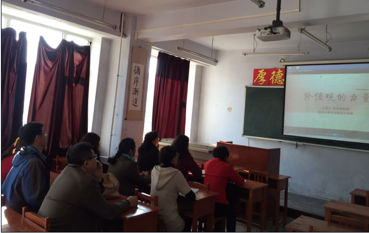 活动中,师生们观看、聆听了由教育部社会科学司指导、高校思想政治理论课教学指导委员会组织录制、武汉大学沈壮海教授主讲的网络视频课《价值观的力量》。视频授课中,沈壮海教授结合历史与现实,以丰富的例证、透彻的分析、清晰的思路,就“什么是价值观和核心价值观”、“价值观的力量体现在哪里、生发自哪里”、“如何理解社会主义核心价值观”、“大学生应当如何肩负弘扬和践行社会主义核心价值观的责任”等四个问题展开讲述。他详细解读了核心价值观概念及发挥的独特作用,重点分析了社会主义核心价值观内涵及当代青年大学生如何弘扬、践行社会主义核心价值观,在这部分内容中,沈教授在分析习近平总书记提出的青年大学生要“勤学”、“修德”、“明辨”、“笃实”的基础上,认为青年大学生要弘扬和践行社会主义核心价值观,必须正确把握青年的独特性(独特的社会责任、独特的人生阶段和独特的历史时期),树立远大的理想信念,从身边事做起,做到“人人有责的自觉”、“勤奋学习的自觉”、“价值持守的自觉”和“积善成德的自觉”。深入浅出的课堂讲解、生动鲜明的历史画面,感染了课堂上的每一个人,使我们更加清晰地认识到价值观的力量,即只有凝聚核心价值观,人民才会有信仰,民族才会有希望,国家才会有力量。