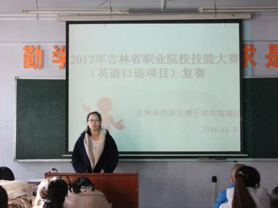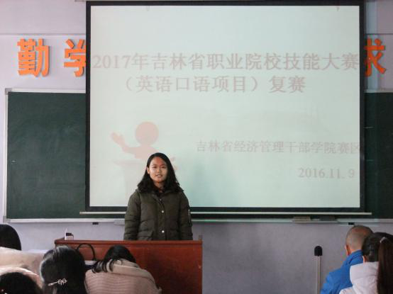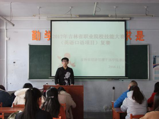 11月9日下午1:30分,2017年吉林省职业院校技能大赛(英语口语项目)大阳城app注册赛区复赛在院部B教304教室举行。十五名参赛选手同场竞技,均表现出了各自的超高水平。最终,来自经济管理学院2015级工商管理专业的孙鹏同学获得了本次比赛的第一名!