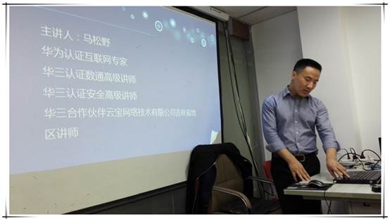 我院与云宝网络(长春)技术有限公司已经合作多年,曾经在课程设计、外聘教师、联合培养人才等多方面都有合作。本次课程设计云宝公司安排了三名经验丰富的高级技术工程师马松野老师(考取了H3CIE认证)、王立新老师和王凯老师为学生们讲授企业实际项目,力争让学生们近距离接触真实的网络项目,提升学生配置网络的综合技能。