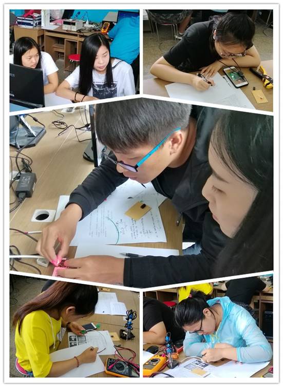 大赛内容包括:1.依据电路板及实物绘制原理图;2.依据实物及原理图说明器件功能及参数计算;3.实践操作三大部分。同学们根据实际应用电路,利用观察、测量、分析计算等手段,复原原理图。将学习的理论与实践相结合并灵活运用,极大地激发了学习兴趣。通过自行设计电路、选择器件,实现直流高压二极管发光和反相器的正常应用。
