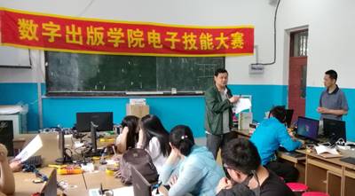 本次竞赛是数字出版学院首次组织分院内的电子应用竞赛,得到了分院领导的高度重视,邓又明副院长到场巡视指导。