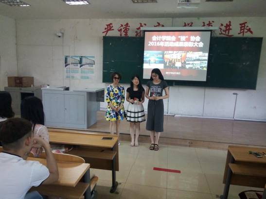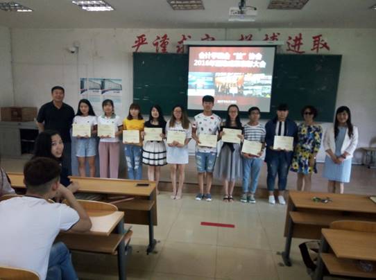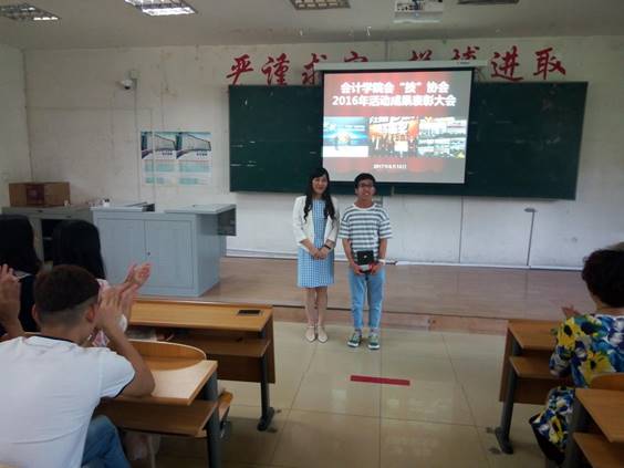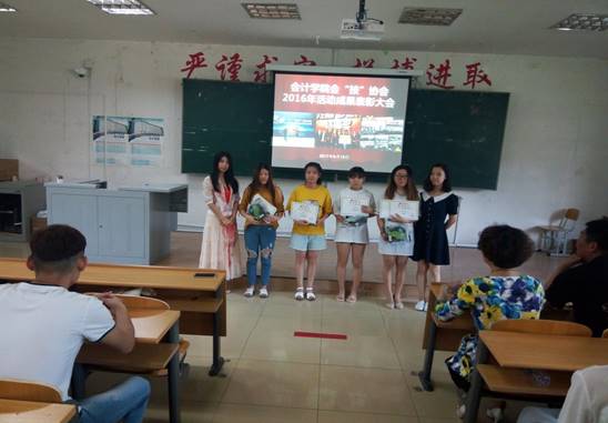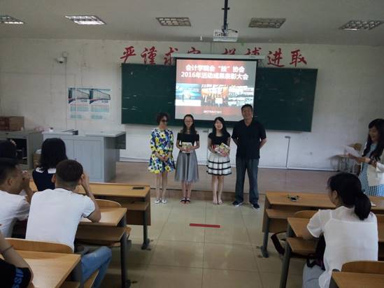 2017年6月15日中午,在A教学楼105教室会计学院召开了会“技”协会2016年系列活动成果表彰大会。会计学院院长李昕、党总支书记田夫、副院长林冬梅、金手指社团教练辛悦、金算盘社团教练张萌参加了本次大会并为学生颁奖。