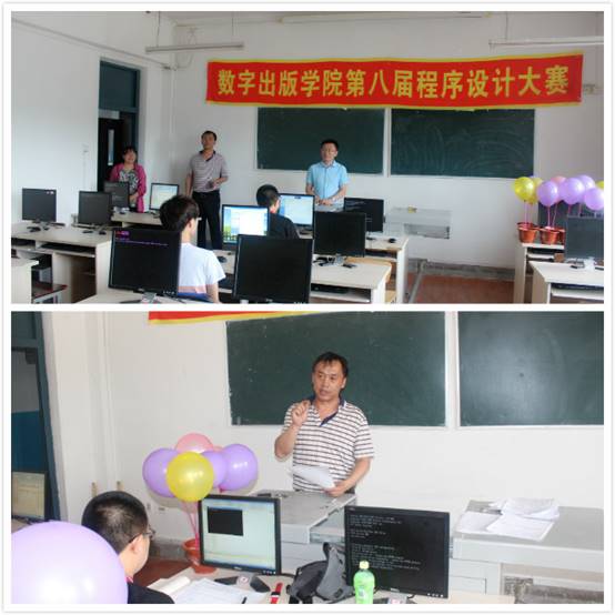为了调动学生的学习热情,提高学生程序设计能力,2017年6月21日下午14:00数字出版学院在前进校区A213教室举办了第八届程序设计大赛复赛。本次比赛继续由分院院长刘庆红、分院副院长邓又明、教研室主任刘先花、教研室主任张海鸥四名老师组成裁判组,参赛选手是通过初赛选拔出的八名同学。