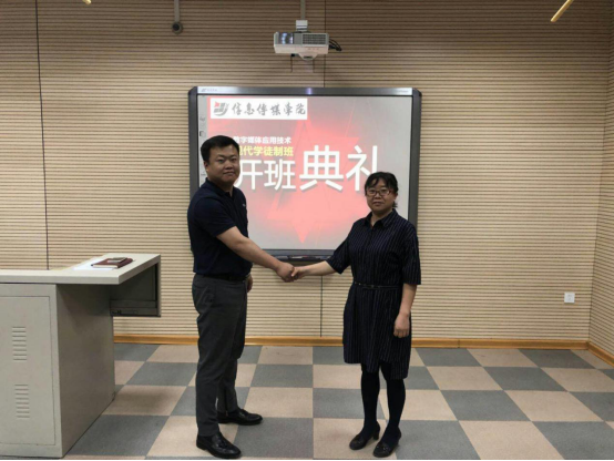 首先,孙经理为开班典礼致辞。他简述了现代学徒的意义,介绍了冉晟科技有限公司的发展现状、企业文化和人力资源战略,也表明了校企合作育人的决心。他希望所有学生能够积极利用学院和企业共同打造的平台,在学校努力学习,在企业认真实践,不断提升自己。最后他用“聚是一团火,用青春的热情点亮学习之路;散是满天星,用学识和实践照耀职业生涯”勉励各位同学。