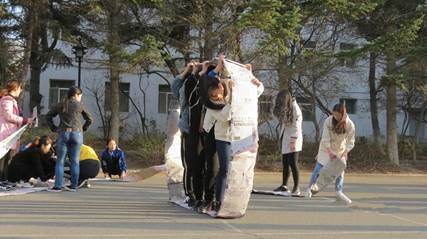 本次公益活动包括三项内容:一是合作慢跑。即5人1组,参赛队计7组,每组将准备好的报纸粘贴成一个圆,每组人员站在粘贴好的圆形报纸内慢跑,从起点慢跑到终点,如中途报纸有断开或破损现象,则回到起点重新开始。最后评出三个团队获奖并颁发了获奖证书,通过合作慢跑增强了学生的团队合作意识和拼搏意识;二是知识问答。通过知识问答,考核学生的综合知识积累,在答题过程中认识到自身的欠缺,并做好以后学习的准备;三是围着操场慢跑,每人跑1万步,并通过微信运动中的腾讯公益将1万步捐出去,可以选择为重症孤儿童获新生、为创新型公益助力、为孩子提供素养教育、为乡村妇女撑起希望,从中选择一项捐赠,本次慢跑活动开始有30余人参加,坚持到最后的师生共18人,累计19万余步,匹配捐款20.5元,钱虽少,但意义重大,运动中帮助了需要帮助的人,虽有些累,但大家都感到很欣慰。