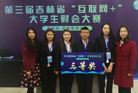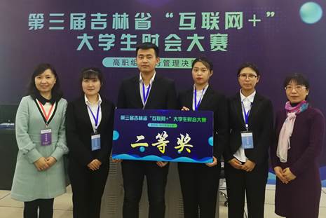 2018年3月24日,第三届吉林省“互联网+”大学生财会大赛高职组-财务管理决策赛项,在长春金融高等专科学校开赛,会计学院派了两支参赛队伍。经过6个小时的激烈角逐,王晓霜和宣胜瑾老师指导的飞跃队(队员:翟昌琪、喻琪瑞、张馨元、逄帅)获得了大赛二等奖,辛悦和张萌老师指导的超星队(队员:董佳坤、范江雪、马爱华、李双)获得了大赛三等奖。
