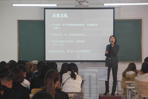 文化旅游学院副院长李娌为到场企事业介绍专业实训课程安排