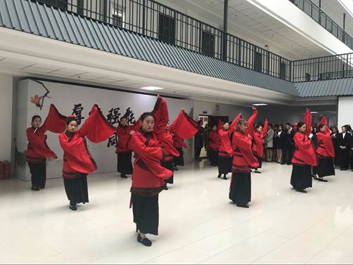 悠扬的古筝、秀美的古风礼仪操表演、优雅的茶艺表演以及精美的中国结制作拉开了整场招聘会的帷幕,学生们展示的特色才艺,吸引了到场企事业单位负责人的目光,也充分展示了文化旅游学院的风采和特色。