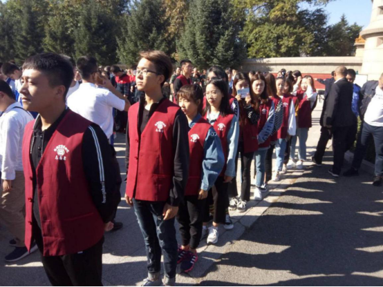 早上8点30分旅游管理班全体学生在伪满皇宫的东北沦陷馆门口集合,与其他学校及单位共同参加9.18的纪念先烈志愿者服务活动。