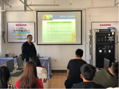 2018年9月6日,上午8点,在院部B教411实验室,信息传媒学院进行了物联网应用技术专业的入学第一课——专业认识。本次专业认识由电子与物联网教研室主任张庆丰老师主讲,以“从入门到就业”为主题,2018级21名物联网应用技术专业新生全部到课。