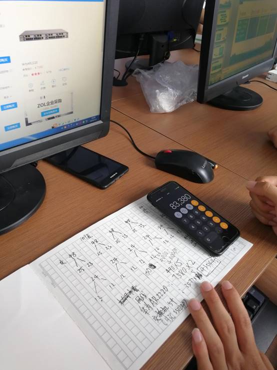 万帅辰同学作为实施网络工程师在做设备的选型和设备的预算