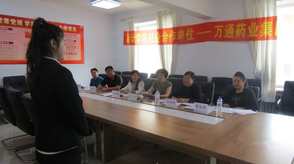 万通药业财务二部王福英部长对面试学生进行专业知识提问