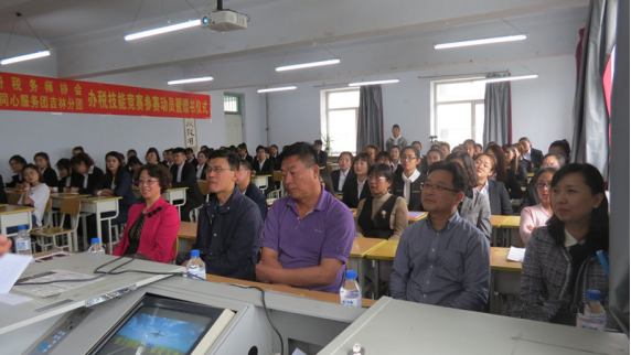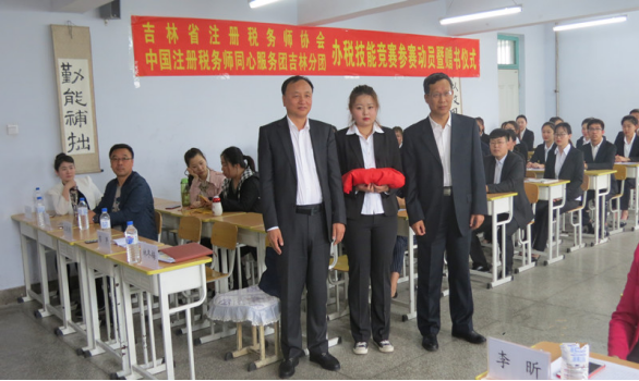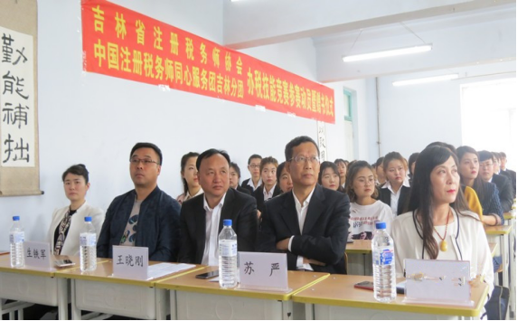 2018年5月23日下午,会计学院校企合作现代学徒制试点项目—中圣达会计班的开学典礼在A教201教室隆重召开。中圣达财税服务集团董事长王晓刚(吉林省注册税务师协会副会长、中国注册税务师同心服务团吉林分团副团长、长春市第十二届、十三届政协委员)、吉林省注册税务师协会原秘书长苏严(中国注册税务师同心服务团成员)、教务处副处长、教师发展中心副主任盛立军,会计学院院长李昕、党总支书记田夫、副院长林冬梅、党总支副书记南洪吉及部分教师代表和50名中圣达会计班学员出席了开学典礼。在开学典礼上,还同时举行了全国办税技能大赛的动员宣讲和免费赠书活动。