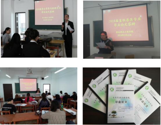 毕业论文是实现高职院校人才培养目标的重要教学环节。为了加强管理,提高教学质量,5月23日下午,食品药品工程学院组织了2018届学生毕业生论文答辩活动,共4个专业100余名学生参加了答辩。答辩活动为师生间相互交流、共同提高提供了一次难得的契机。参与答辩的毕业生都能够从专业方向出发,贴近实际,认真回答评阅教师提出的问题,评阅教师准确记录答辩学生的精彩瞬间。在学院领导的高度重视和认真组织安排下,通过全体师生的共同努力圆满完成了此次答辩工作。
