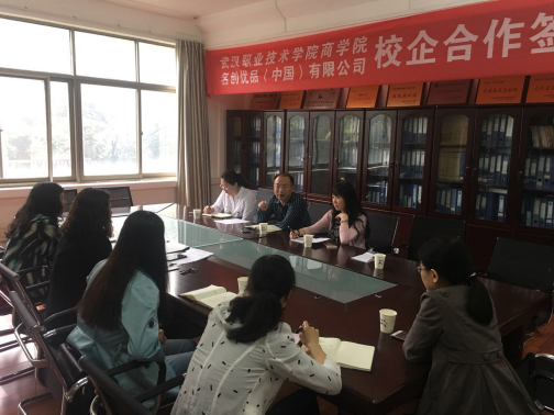 在武汉职业技术学院,商学院院长艾小玲组织相关教师,向调研组介绍电子商务学徒制班的运行情况。电商学徒制是与北京博导前程信息技术股份有限公司合作开办的,博导前程提供自主开发的线上商城并负责设置课程,为学生提供货源,指导学生从事真实的电子商务运营业务。双方共同建立起了教学体系和考核评价体系。